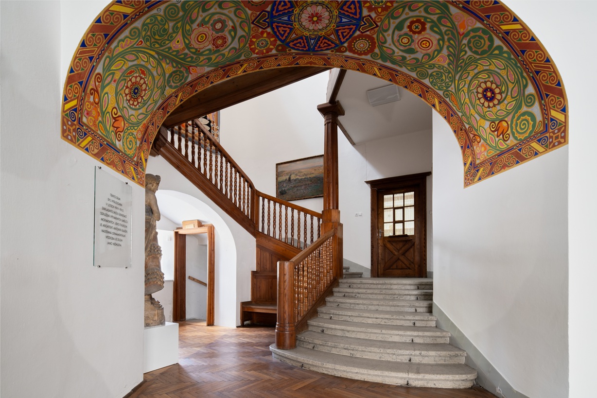 Architektura propojuje folkloristické a secesní tvarosloví exteriéru a reprezentativních prostor s modernisticky pojatými výstavními sály s proskleným stropem. Nástěnné dekorace provedl dle vlastního návrhu Jano Köhler, což byl mimo jiné blízký spolupracovník Dušana Jurkoviče.
