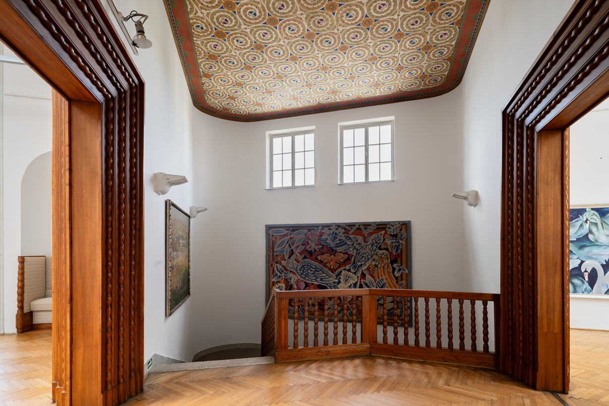 Před válkou jednoznačně Dům umělců v Hodoníně, to je úžasné celostní dílo, podle mě jedna z nejzajímavějších staveb počátku 20. století jakou v Česku máme. Umělecké pavilony jsou obvykle samostatně stojící, ale tady to nešlo, takže budova ukazuje právě tu zmiňovanou Blažkovu šikovnost. Jak dokázal proměnit nevýhody nárožní parcely ve výhody realizované stavby. Zvenku je poměrně strohá, s velkými plochami omítky a menšími okny. Důraz je kladen na vstup, který je umístěný v seříznutém nároží, takže je úzký, zdánlivě vysoký a tu vertikalitu podporuje jak žudro, tak velké okno a zdobení v patře. Je to taková chytrá a rafinovaná vizuální hra. A ta pokračuje i vevnitř. Máš tam nejen ty úžasné dřevěné prvky, které navrhl sám Blažek, ale každý prostor je individualizován, každý je zvláštní. Nejsou to jen holé výstavní stěny, které má umění dodatečně naplnit. Naopak, interiér je uměleckým dílem sám o sobě, jak z hlediska materiálů a výzdoby od Jano Köhlera, tak z hlediska prostorové kompozice.