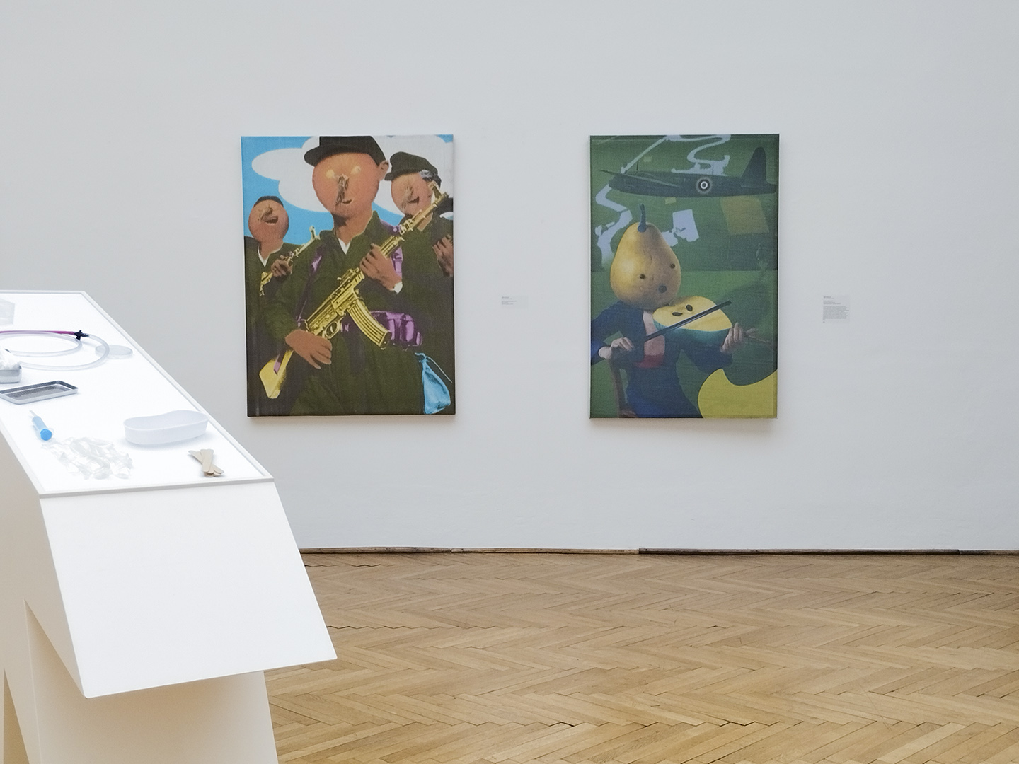 Vaše dva obrazy z cyklu ‘Strůjci války’, které jsou vystavené na aktuální výstavě ‘Svoboda v pubertě – umění 90. let’, vyvolávají dojem přímočarých děl. Na první pohled působí groteskně, ale objevují se v nich témata války a manipulace, kombinují hravost a brutalitu. Je pro vás tento kontrast klíčem k tomu, aby si divák uvědomil, že za tou ‘legrací’ je skutečná tragédie?