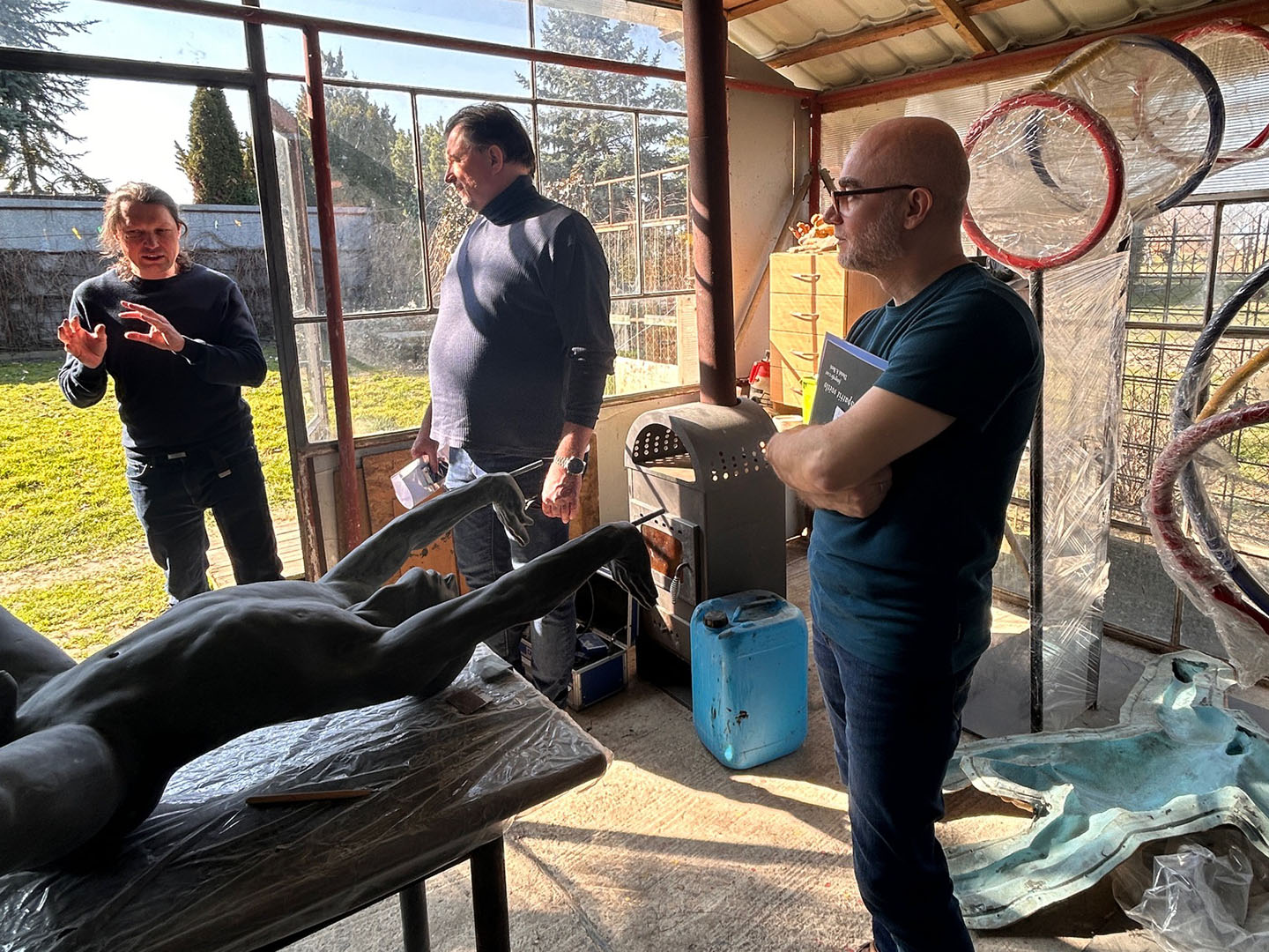Na začátku března proběhla pracovní návštěva ateliérů dvou výrazných slovenských sochařů – Mira Trubače a Martina Kochana v Trnavě. Setkání bylo součástí příprav přeshraničního projektu Interreg s názvem „Od modelu k soše“, jehož cílem je představit proces vzniku sochařského díla od prvotního návrhu až po finální realizaci ve veřejném prostoru. Významnou součástí je sympozium, které se uskuteční v termínu 17.–26. srpna 2026 a vyvrcholí slavnostním odhalením vzniklých děl, vernisáží a doprovodným koncertem.