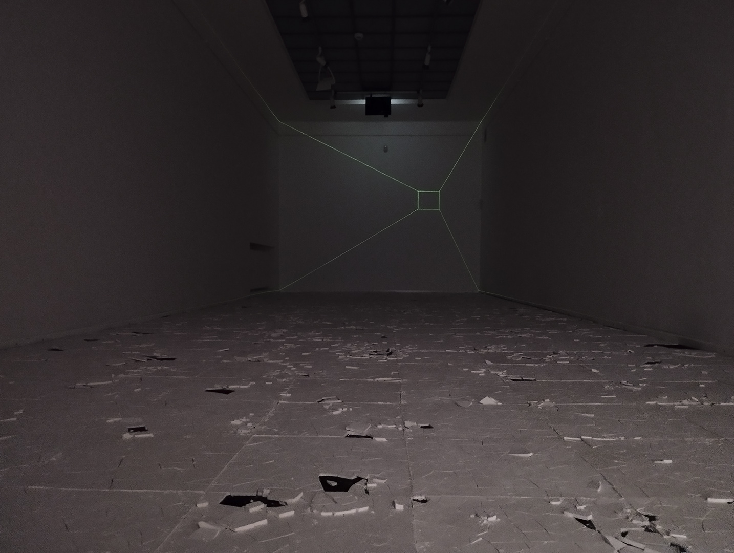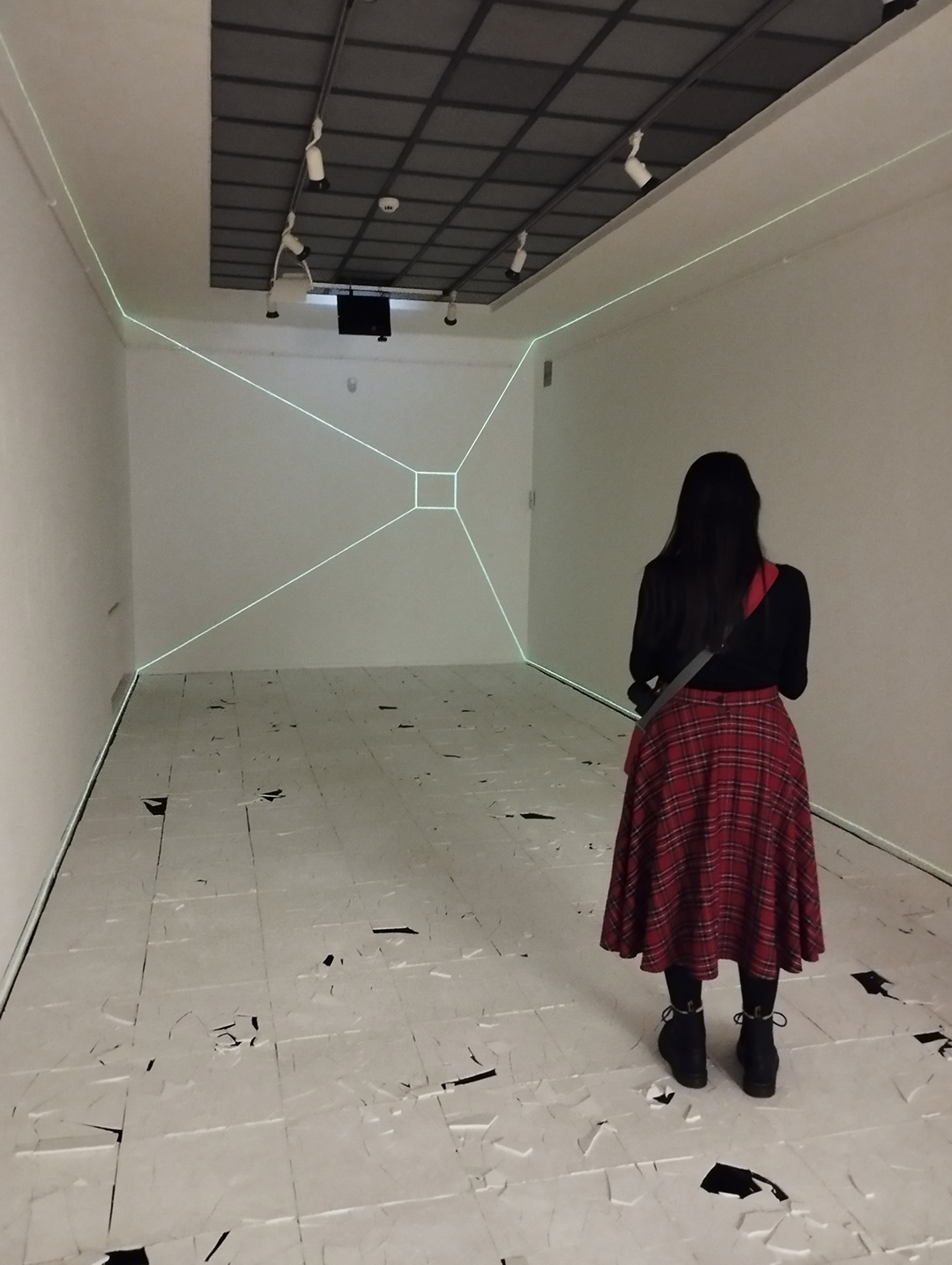 Dílo autorky přeměňuje prostor grafického kabinetu na místo, kde významnou roli sehrává pohyb každého návštěvníka. A to ve dvou rovinách. Instalace se proměňuje našlapováním návštěvníků na podlahu tvořenou sádrovými dlaždicemi, a na pohyb pak reaguje i světlo v místnosti.