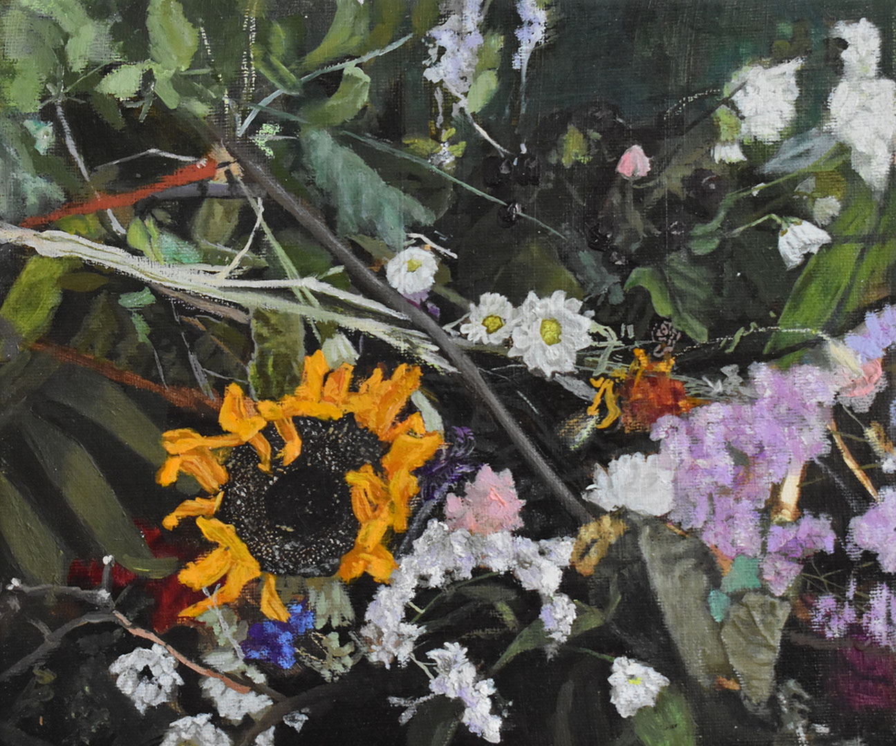 Květinová dílna inspirovaná výstavou květinových motivů v obrazech vystavující slovenské výtvarnice Dušany Vrbovské.