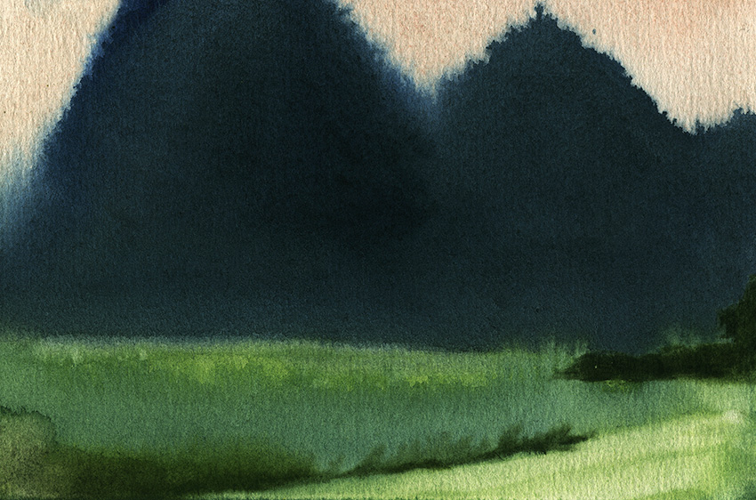 Na výstavě dále představujeme ukázky dalších realizací: krátkou komiksově zpracovanou povídku Nikolaje Vasilijeviče Gogola – Portrét, knihu Hlad od Knuta Hamsuna či autorský časopis Nelida – Naše lidové umění nebo Bretaňský skicář zaznamenávající dojmy z její studijní cesty po Francii. Hlavním těžištěm této drobné výstavy jsou však malby inspirované poezií Ledové hory, Chan-Šan. Budhistický mistr Chan-Šan psal své verše na bambusy, stromy a skály a na stěny venkovských stavení. Jen péčí osvíceného guvernéra místní prefektury se verše tohoto – na první pohled bláznivého žebráka – podařilo zachovat. Stejně jako Chan-Šanovi básně jsou i akvarely Heleny Hankeové úsporné, prosté. Využívá přirozených vlastností rozpíjení barvy do vlhkého podkladu k vyjádření kvality krajinných celků – lesů, skal, oblohy, čímž se odhaluje její bravurní zvládnutí této techniky. Členitá krajina, vysoké homole a strmá údolí horských masivů v prefektuře Tchaj-Čou vybízejí po staletí k pokornému usebrání a pohled na úchvatnou krásu přírody k pohledu do vlastního nitra. Jak říká básník: