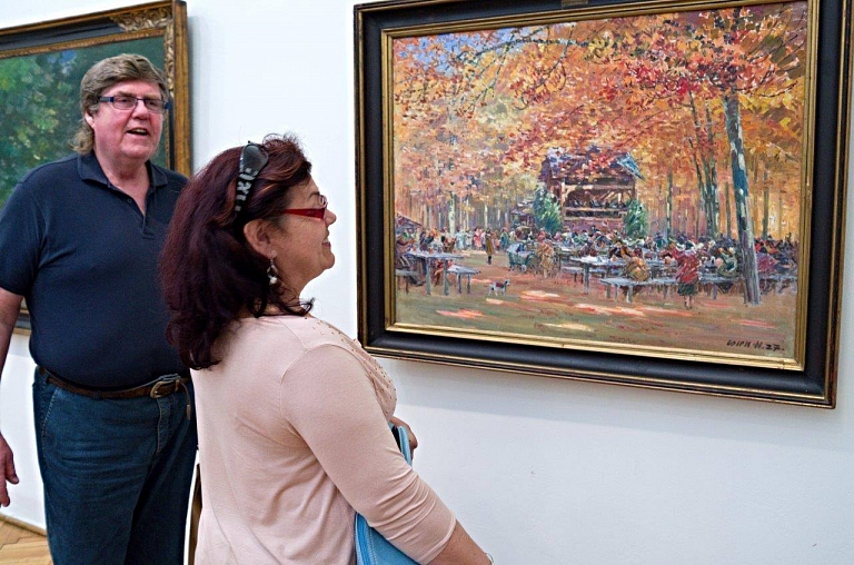 Malování v expozici galerie pod vedením lektora, malíře Pavola Stručky.