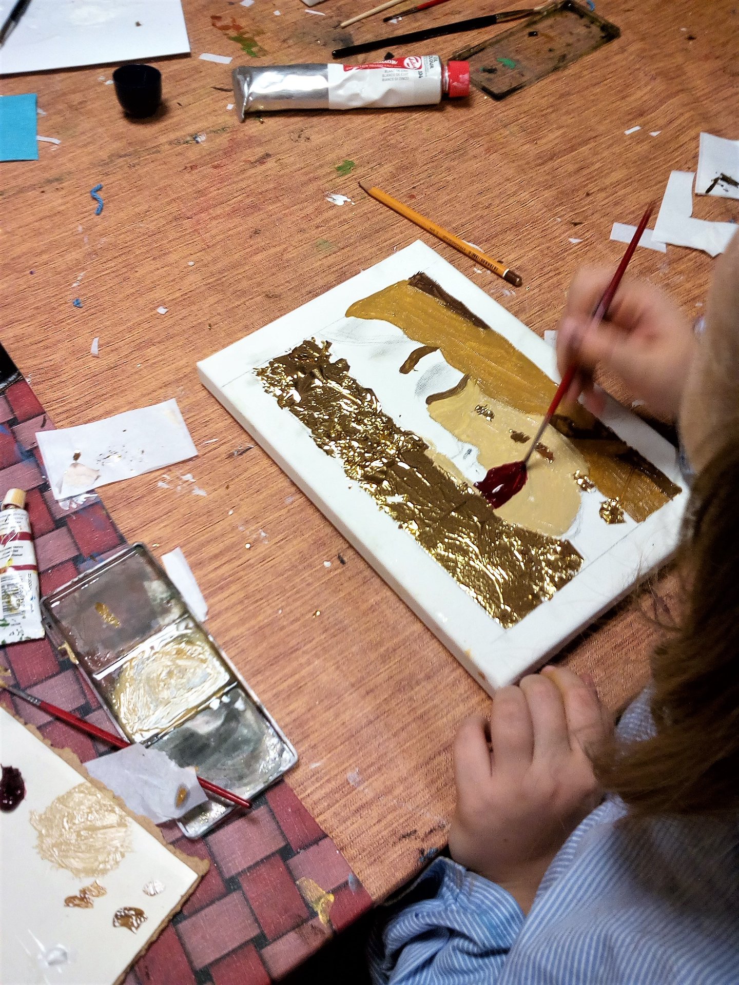 Sobotní workshop je určen všem zájemcům o výtvarné umění a kreativní aktivity (doporučený věk účastníků: od 12 let). Tentokrát bude zaměřen na tvorbu obrazu inspirovaného secesí – malbu na plátno s imitací zlacení.